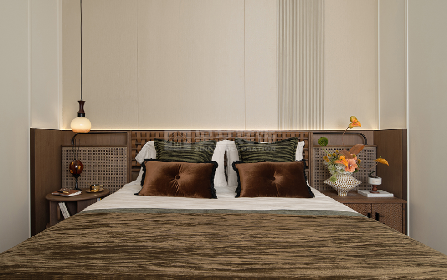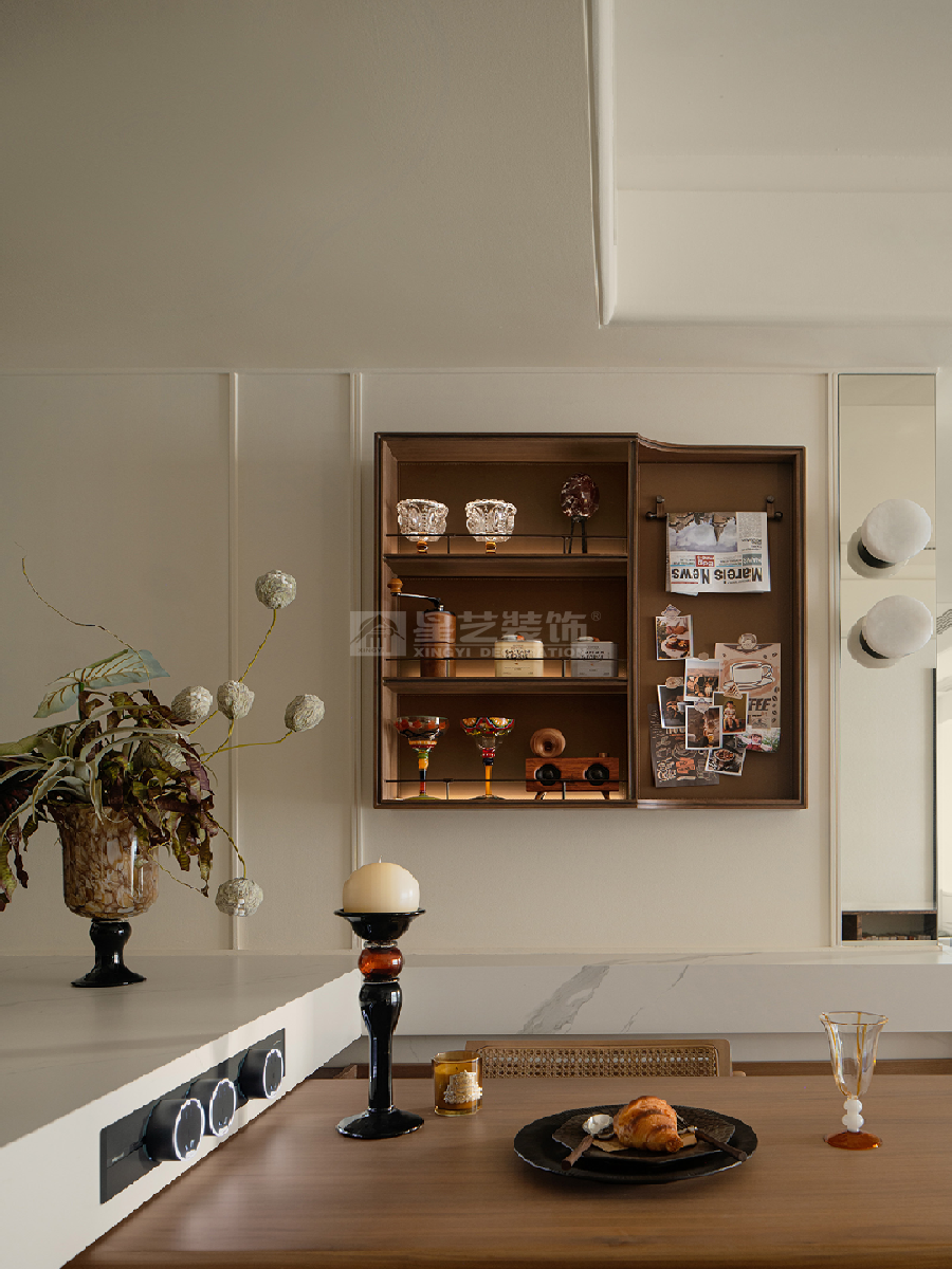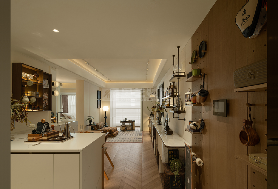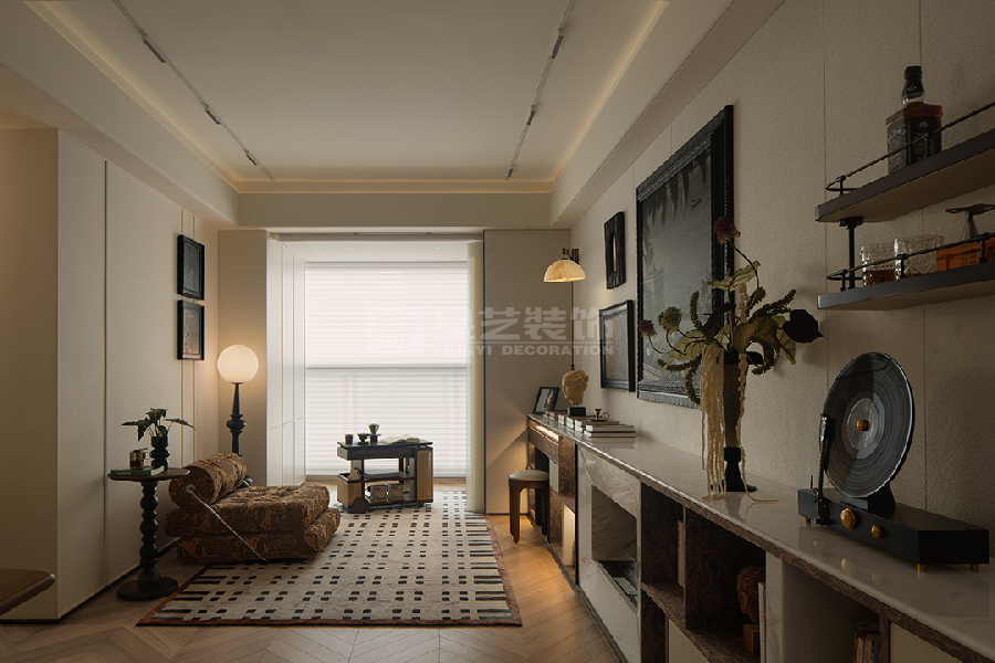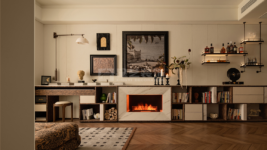 以中古风融合轻法式为核心,通过焦糖色皮革、深色木质与复古金属配饰的搭配,结合石膏线、艺术挂画等法式元素,打造出复古优雅又充满烟火气的生活空间。