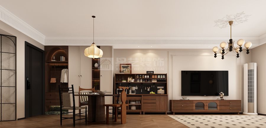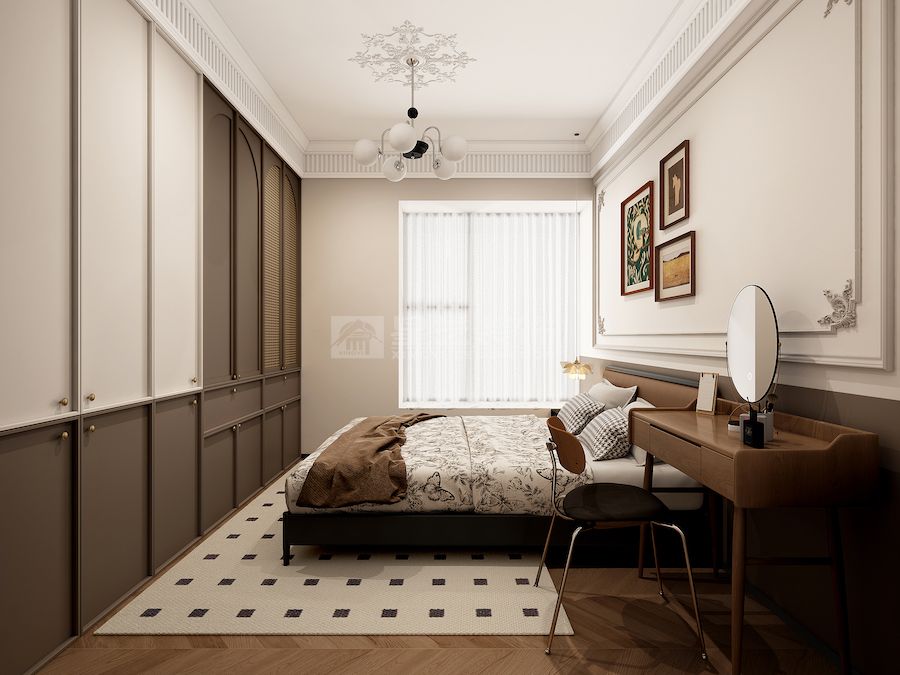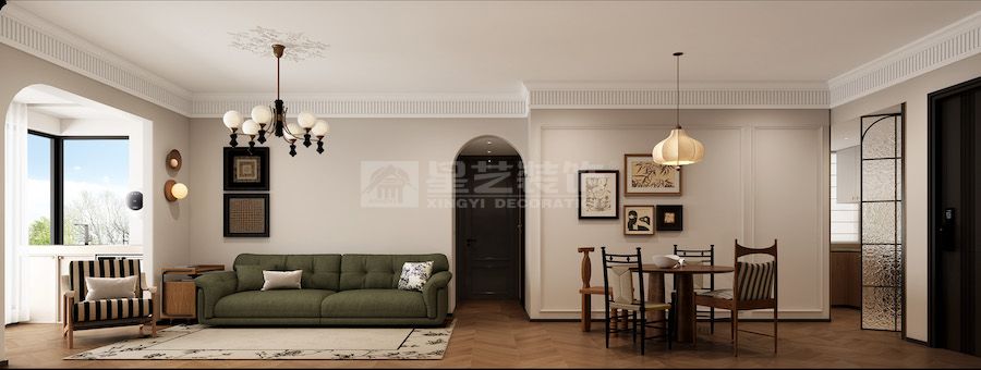 法式浪漫主义与中古现代主义的创意融合,以「优雅与功能的诗意碰撞」为核心,将法式雕花线条、对称美学与中古的有机形态、实用主义结合,打造复古摩登且宜居的空间