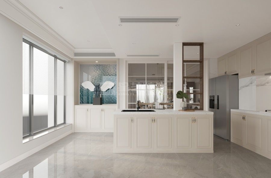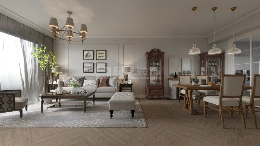 美式设计将经典元素与当代审美和智能生活需求相结合。 总而言之,现代美式设计理念的精髓在于,它不局限于某种固定的形式,而更是一种追求舒适、自由、个性化表达的生活态度。 色彩与材质 •主色调:优先选择中性色、大地色系,如米色、灰色、浅棕色 •点缀色:可用深蓝、暗红、墨绿或金属色进行局部提亮。 •家具特点:注重舒适性与实用性,尺寸通常较为宽大 •空间布局:追求开放通透,常见开放式厨房与客餐厅一体化设计 •点睛之笔:一个质感厚重的实木餐桌或一张宽大舒适的皮质沙发,能迅速奠定空间基调