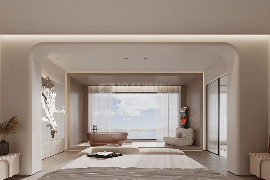 本案择址惠州巽寮湾畔,将三套酒店公寓打通重构,打造出一间拥揽双卧的现代风格度假套房。 空间以现代简约为基调,摒弃冗余装饰,用利落线条与通透布局,呼应海边度假的松弛感。开放式公区消弭空间边界,让海风与日光自在穿行。主卧设计堪称点睛之笔,浴缸临落地窗而设,白日可伴粼粼波光沐浴,夜晚能枕着涛声仰望星海。双卧格局兼顾私密与欢聚,既满足二人世界的浪漫,也可承载好友同游的惬意。 在这里,度假的意义不再是奔赴远方,而是把大海的诗意,变成触手可及的日常