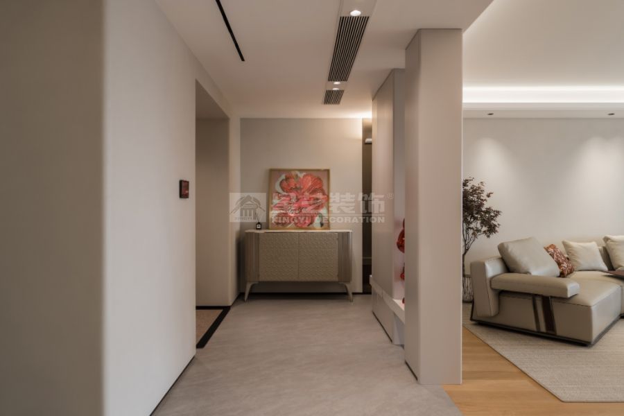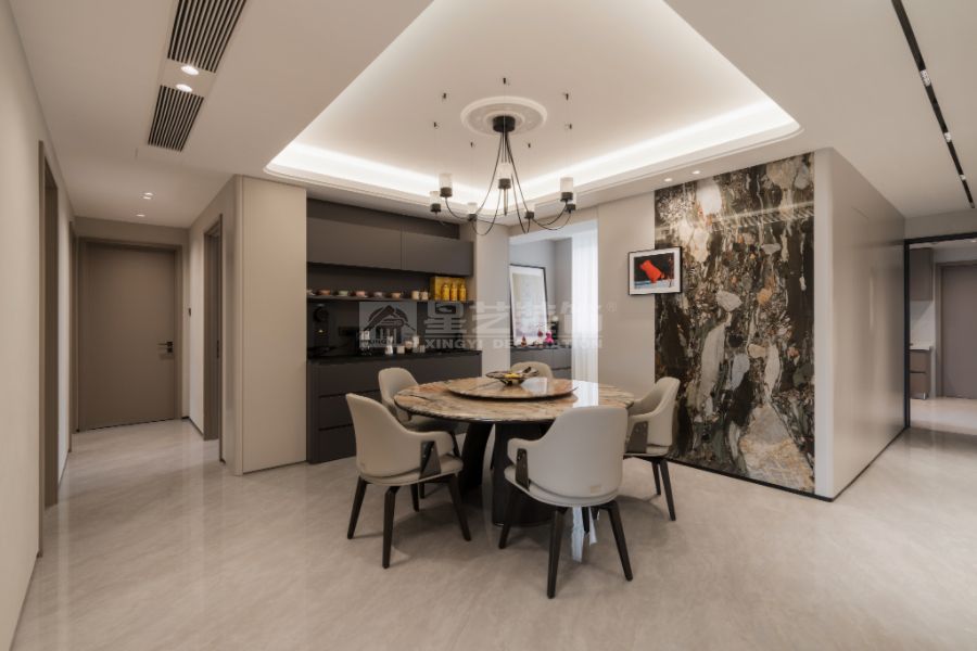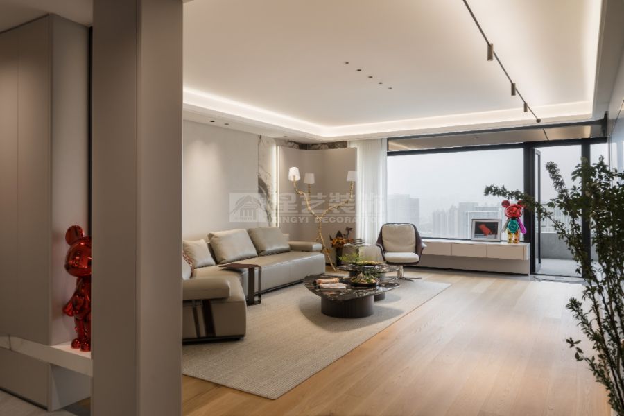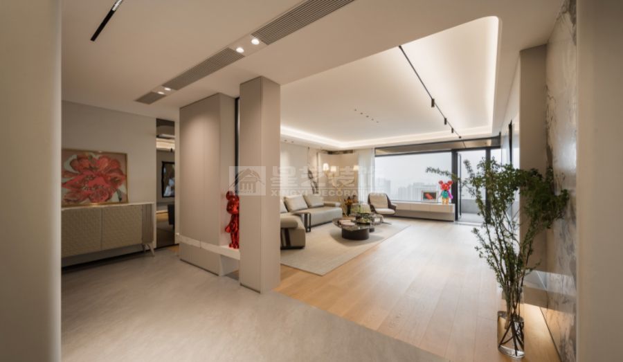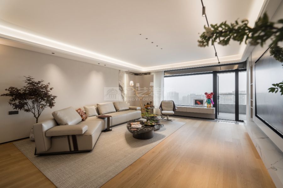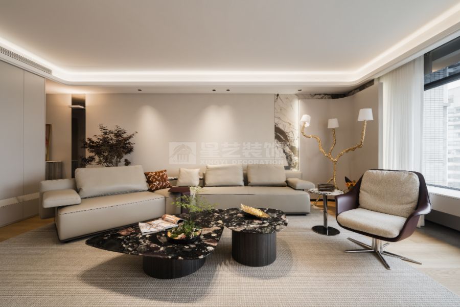 现代轻奢设计风格的核心理念是“低调的奢华”,在简约的空间结构中融入精致的材质与细节,营造有质感但不张扬的生活氛围。整体以中性色为主基调,如米白、浅灰、深咖,局部点缀金属色(香槟金、玫瑰金、古铜)和高饱和度的软装色彩,形成层次对比。材质上多选用大理石、木饰面、玻璃、皮革、金属等,强调触感与质感。造型线条简洁利落,避免繁复装饰,通过灯光设计、艺术品与软装搭配体现品质感与个性。现代轻奢注重功能与舒适,追求“刚刚好”的精致,让居住者在简洁的空间中体验到优雅、舒适与高级感。