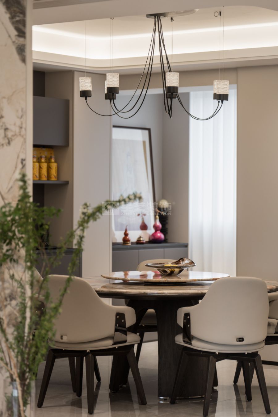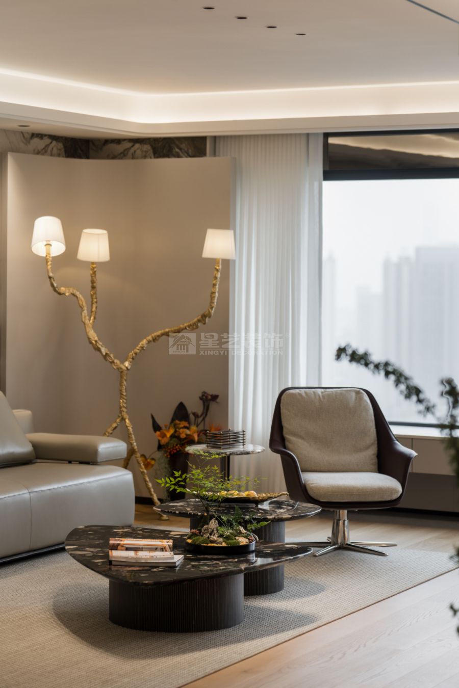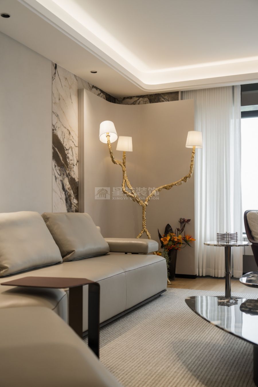 现代轻奢设计风格的核心理念是“低调的奢华”,在简约的空间结构中融入精致的材质与细节,营造有质感但不张扬的生活氛围。整体以中性色为主基调,如米白、浅灰、深咖,局部点缀金属色(香槟金、玫瑰金、古铜)和高饱和度的软装色彩,形成层次对比。材质上多选用大理石、木饰面、玻璃、皮革、金属等,强调触感与质感。造型线条简洁利落,避免繁复装饰,通过灯光设计、艺术品与软装搭配体现品质感与个性。现代轻奢注重功能与舒适,追求“刚刚好”的精致,让居住者在简洁的空间中体验到优雅、舒适与高级感。