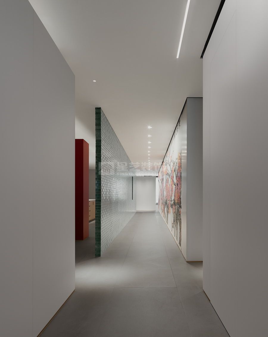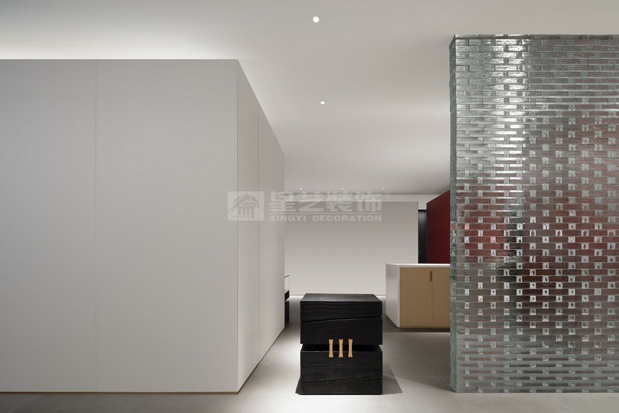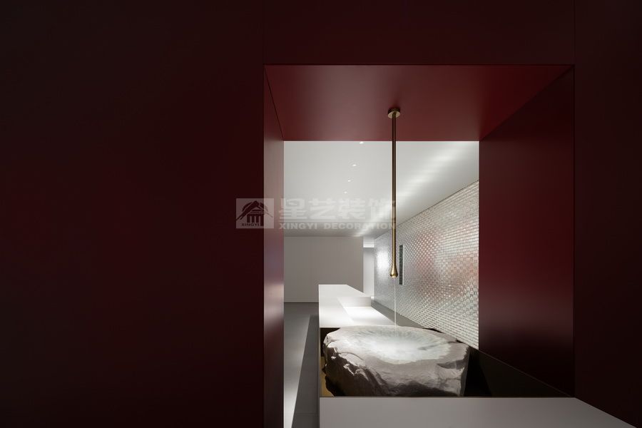 轴线是仪式的象征。通过中心布局的方式,与体块构成联系,空间分割不到顶的木作和天花局部木作延续了空间元素,又很好的塑造出无限的深邃意境。