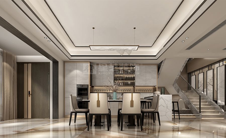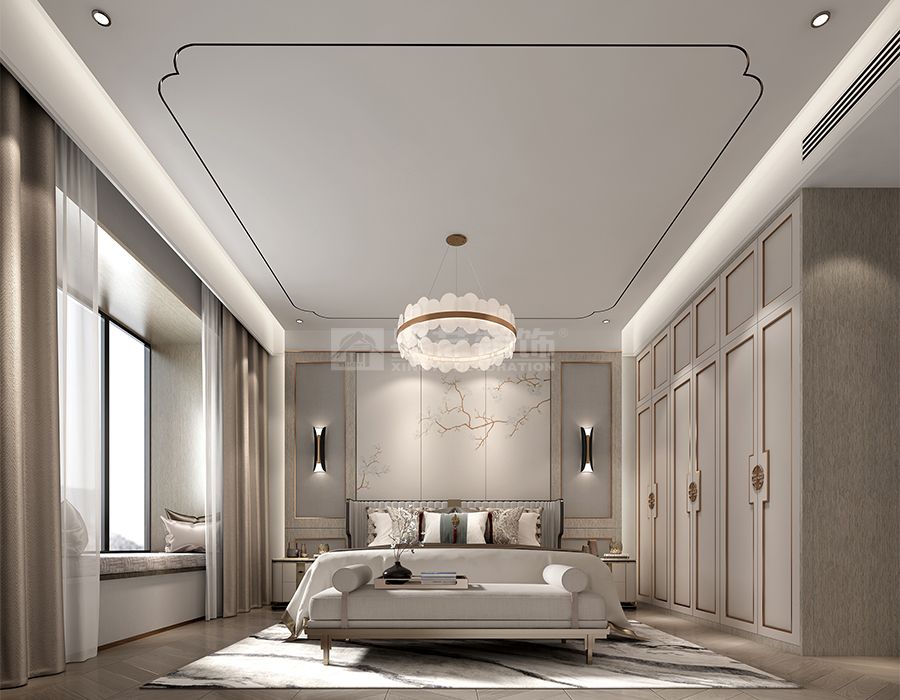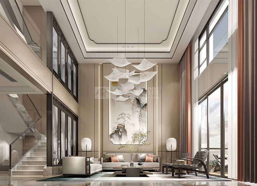 本案落址广州南沙星河丹堤顶楼复式,以现代中式与法式浪漫的碰撞,雕琢一方兼容东方雅韵与法式甜美的居住空间。