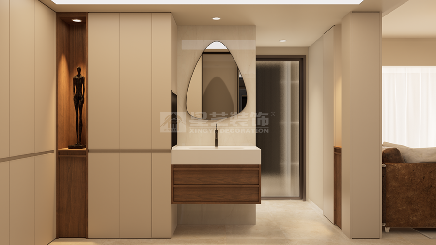 苏州曲桥,凭栏四顾,景致各异,如在画中。本案以一道连续的“观景长廊”串联空间。长廊路径宽窄、转折有致,墙面交替设置艺术品龛与半透屏风。每步行数步,视线即被引导至一处精心构图的场景,将日常生活片段升华为动态艺术展。