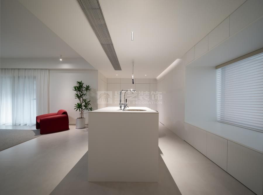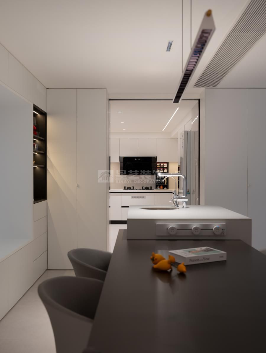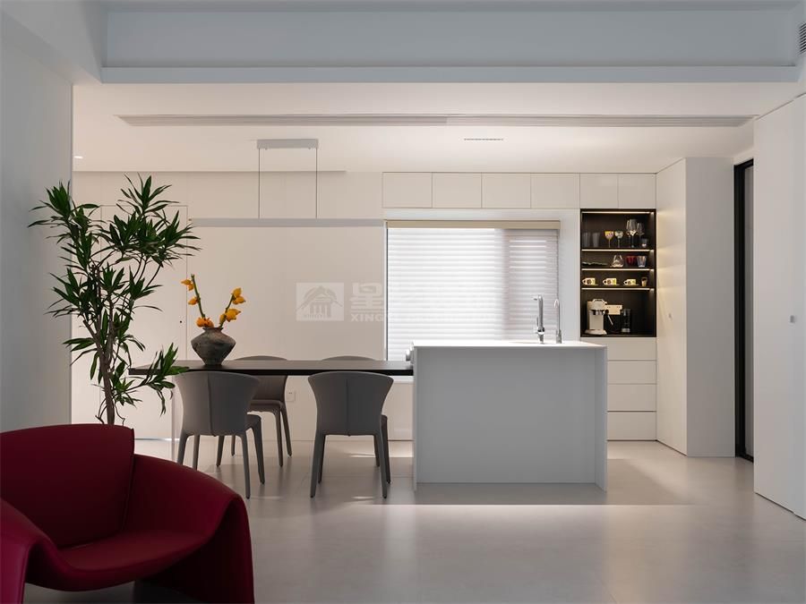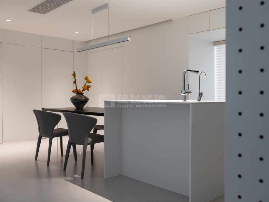 客户身体力行追求极简生活,家里确实收拾得干净明亮,黑白灰的简洁有力,是对极简生活最好的表达,布局方面把厨房与储物间打通,客房缩小,合得常用的空间变得开阔明亮,生活的幸福感大大提升,138方看起有168方的空间感受