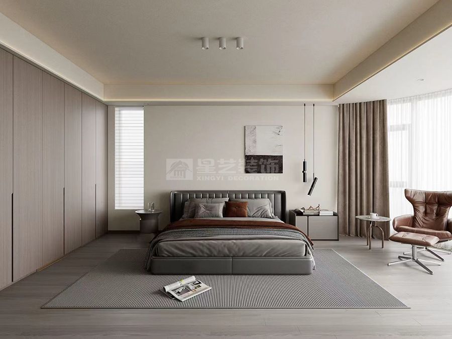 在光影与布局上,采用无主灯设计勾勒空间轮廓,自然光透过大面积窗景引入室内,让深色空间依旧明亮通透;一体化定制收纳柜的设计,既满足了现代生活的储物需求,又让墙面线条保持简洁统一。整体设计跳出欧式装饰的冗杂,以“少即是多”的原则,将深色调的高级感与木调的人文温度相融,最终呈现出一个沉稳、通透且充满生活质感的现代居所。