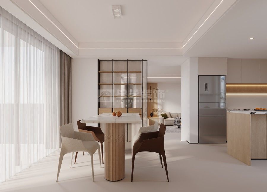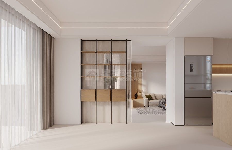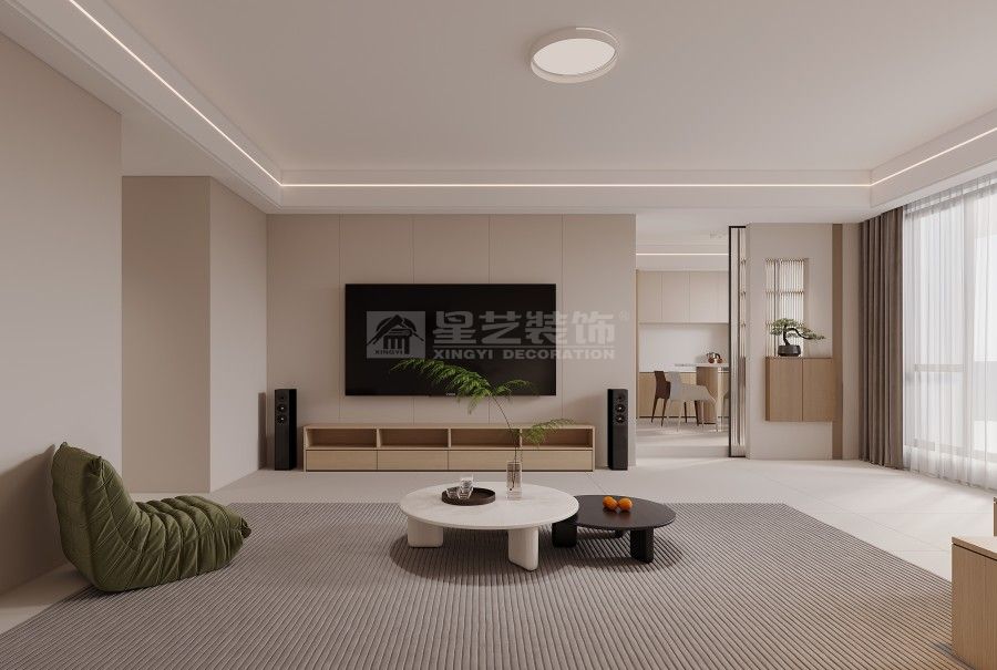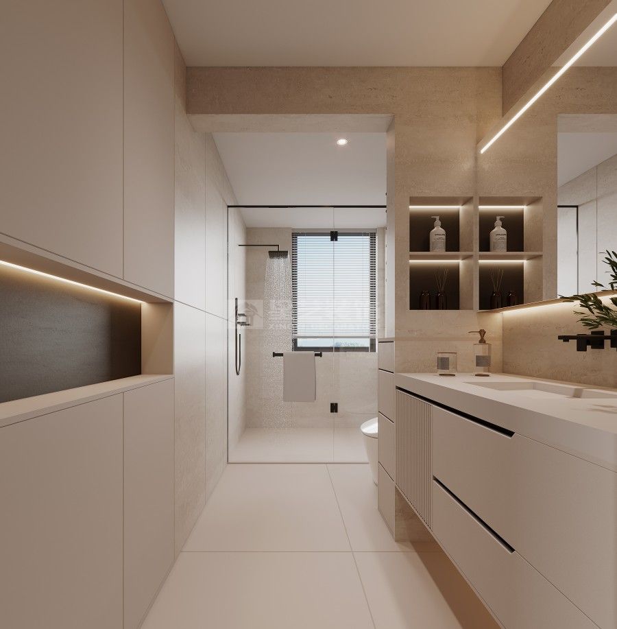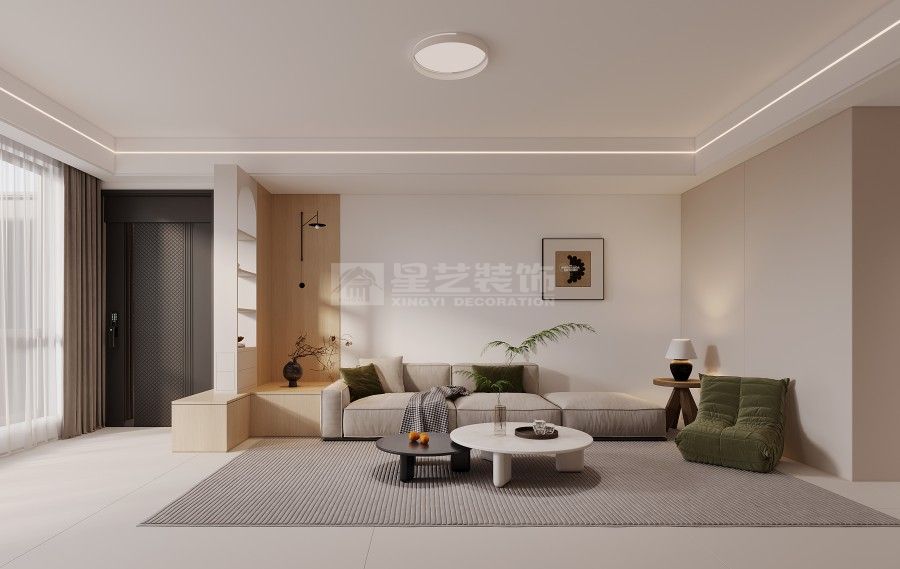 这套案例以 “轻简宜居” 为核心,用低饱和色调铺陈空间基底,借悬浮灯光、通顶柜体强化利落秩序,客厨无界衔接让动线更流畅。局部绿植与撞色软装柔化氛围,既保留现代简约的整洁质感,又以松弛细节适配日常起居的舒适需求。